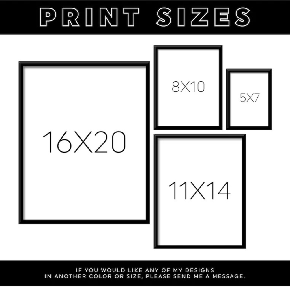 Upon purchase, you’ll get high-resolution (300 dpi) JPEG files in the following sizes: ✔ 16x20 inches ✔ 11x14 inches ✔ 8x10 inches ✔ 5x7 inches