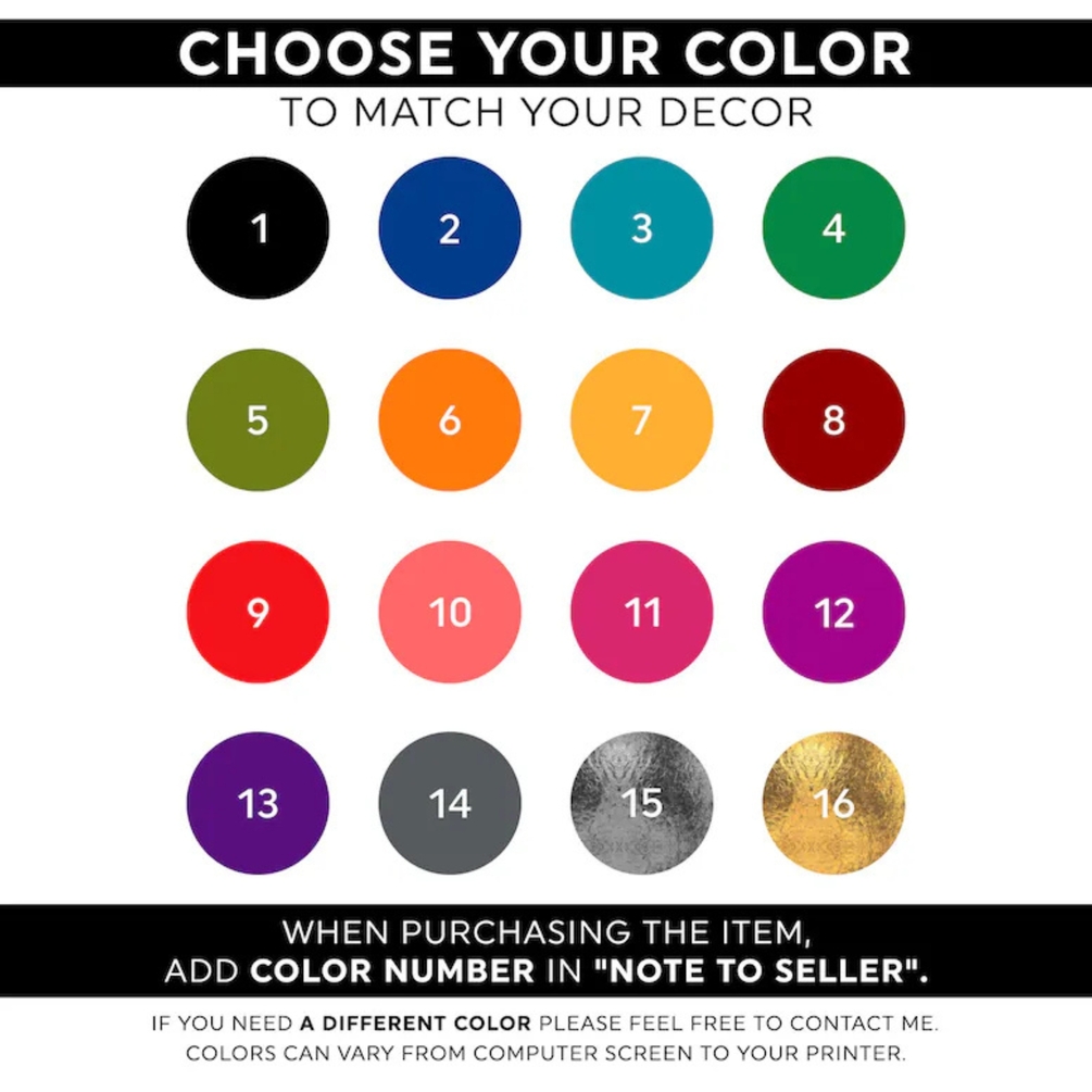 🎨 Want a different color? Leave your preferred color number in the "Note to Seller" or send me a message. Your customized print will be emailed within 48 hours.